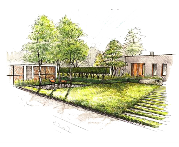 Разработка эскизного проекта - стилистики сада, его планировки и плана озеленения в соответствии с пожеланиями заказчика и условиями местности.
